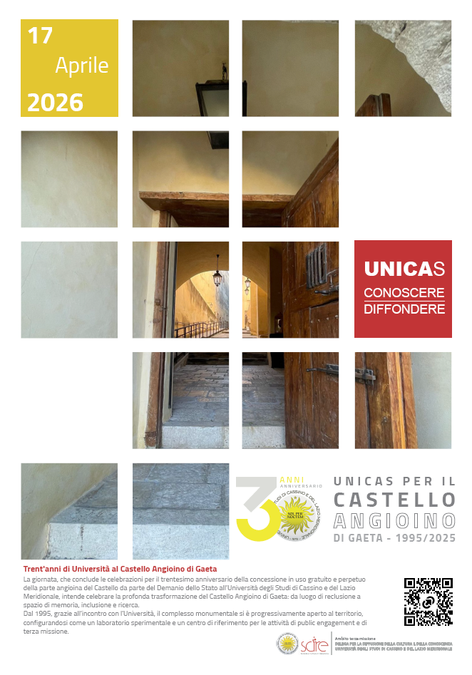 In occasione del trentennale della concessione in uso gratuito e perpetuo del Castello Angioino di Gaeta all’Università degli Studi di Cassino e del Lazio Meridionale, si terrà venerdì 17 aprile 2026, a partire dalle ore 10:00, un evento celebrativo presso il Castello Angioino, Gaeta (LT).