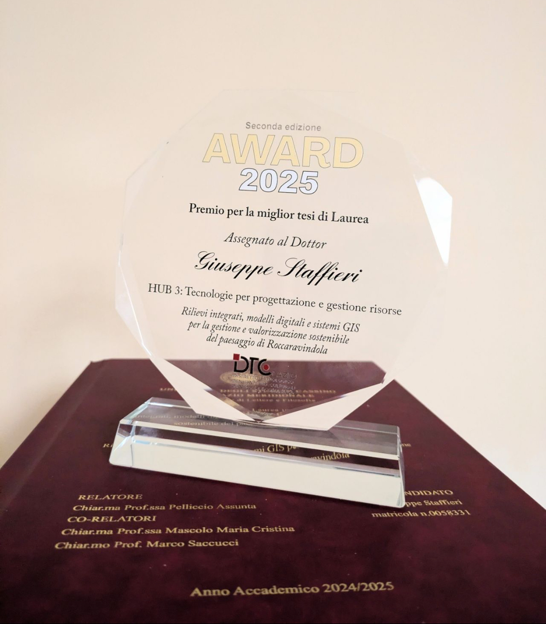 - Al Dott. Giuseppe Staffieri, Premio per la migliore Tesi di Laurea dal titolo “𝑅𝑖𝑙𝑖𝑒𝑣𝑖 𝑖𝑛𝑡𝑒𝑔𝑟𝑎𝑡𝑖, 𝑚𝑜𝑑𝑒𝑙𝑙𝑖 𝑑𝑖𝑔𝑖𝑡𝑎𝑙𝑖 𝑒 𝑠𝑖𝑠𝑡𝑒𝑚𝑖 𝐺𝐼𝑆 𝑝𝑒𝑟 𝑙𝑎 𝑔𝑒𝑠𝑡𝑖𝑜𝑛𝑒 𝑒 𝑙𝑎 𝑣𝑎𝑙𝑜𝑟𝑖𝑧𝑧𝑎𝑧𝑖𝑜𝑛𝑒 𝑠𝑜𝑠𝑡𝑒𝑛𝑖𝑏𝑖𝑙𝑒 𝑑𝑒𝑙 𝑝𝑎𝑒𝑠𝑎𝑔𝑔𝑖𝑜 𝑑𝑖 𝑅𝑜𝑐𝑐𝑎𝑟𝑎𝑣𝑖𝑛𝑑𝑜𝑙𝑎”