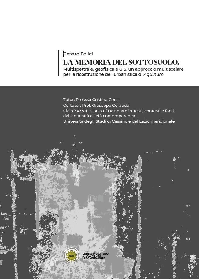 - Al Dott. Cesare Felici, premio per la miglior Tesi di Dottorato dal titolo “𝐿𝑎 𝑚𝑒𝑚𝑜𝑟𝑖𝑎 𝑑𝑒𝑙 𝑠𝑜𝑡𝑡𝑜𝑠𝑢𝑜𝑙𝑜. 𝑀𝑢𝑙𝑡𝑖𝑠𝑝𝑒𝑡𝑡𝑟𝑎𝑙𝑒, 𝑔𝑒𝑜𝑓𝑖𝑠𝑖𝑐𝑎 𝑒 𝐺𝐼𝑆: 𝑢𝑛 𝑎𝑝𝑝𝑟𝑜𝑐𝑐𝑖𝑜 𝑚𝑢𝑙𝑡𝑖𝑠𝑐𝑎𝑙𝑎𝑟𝑒 𝑝𝑒𝑟 𝑙𝑎 𝑟𝑖𝑐𝑜𝑠𝑡𝑟𝑢𝑧𝑖𝑜𝑛𝑒 𝑑𝑒𝑙𝑙'𝑢𝑟𝑏𝑎𝑛𝑖𝑠𝑡𝑖𝑐𝑎 𝑑𝑖 𝐴𝑞𝑢𝑖𝑛𝑢𝑚"