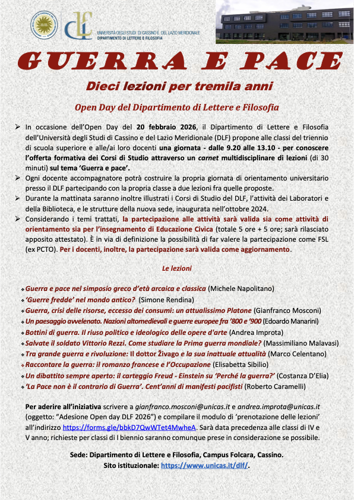 Il programma dell'openday del dipartimento di lettere del 20 febbraio è il seguente: