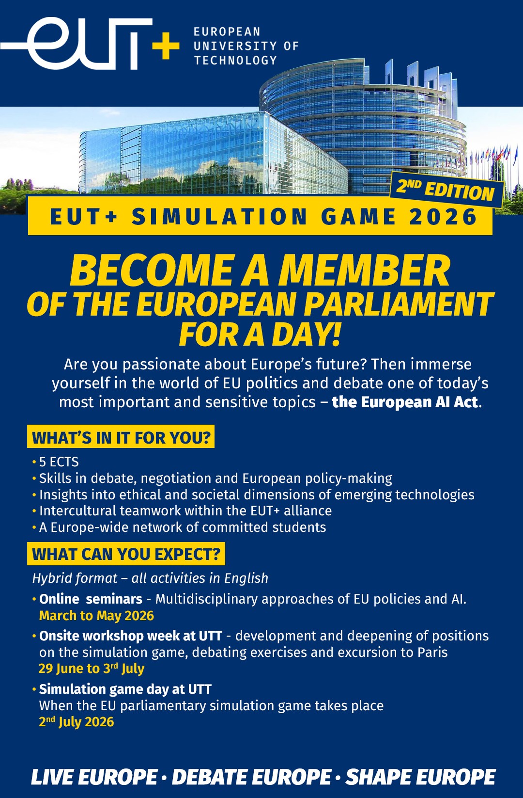 The BIP in "EUt+ Simulation Game" is coordinated by the University of Technology of Troyes (France).