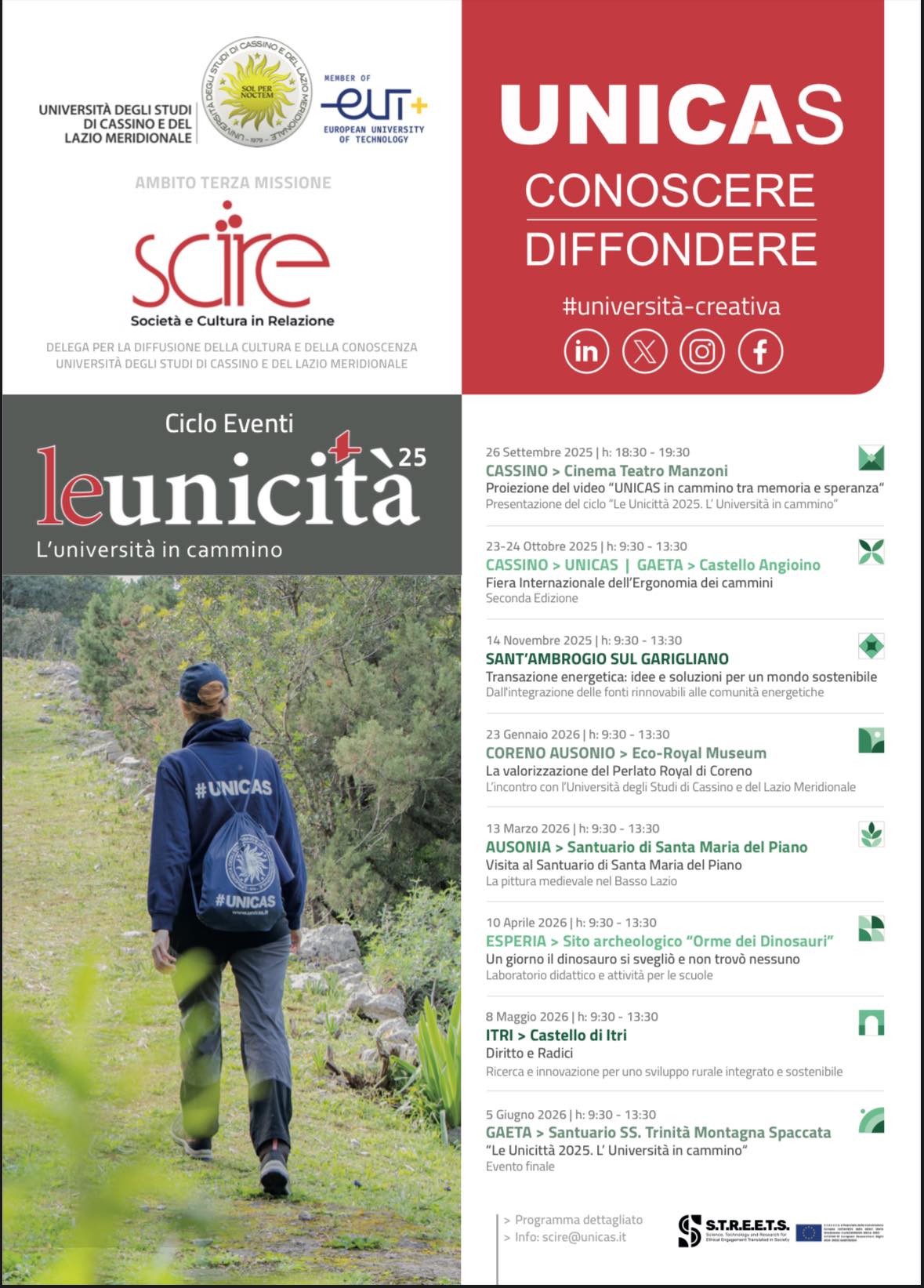 Venerdì 26 settembre 2025, ore 18:30, al Teatro Manzoni di Cassino (FR), presentazione del video “In cammino da Montecassino a Gaeta. Tra memoria e speranza” e del nuovo ciclo di iniziative culturali Le Unicittà 2025.