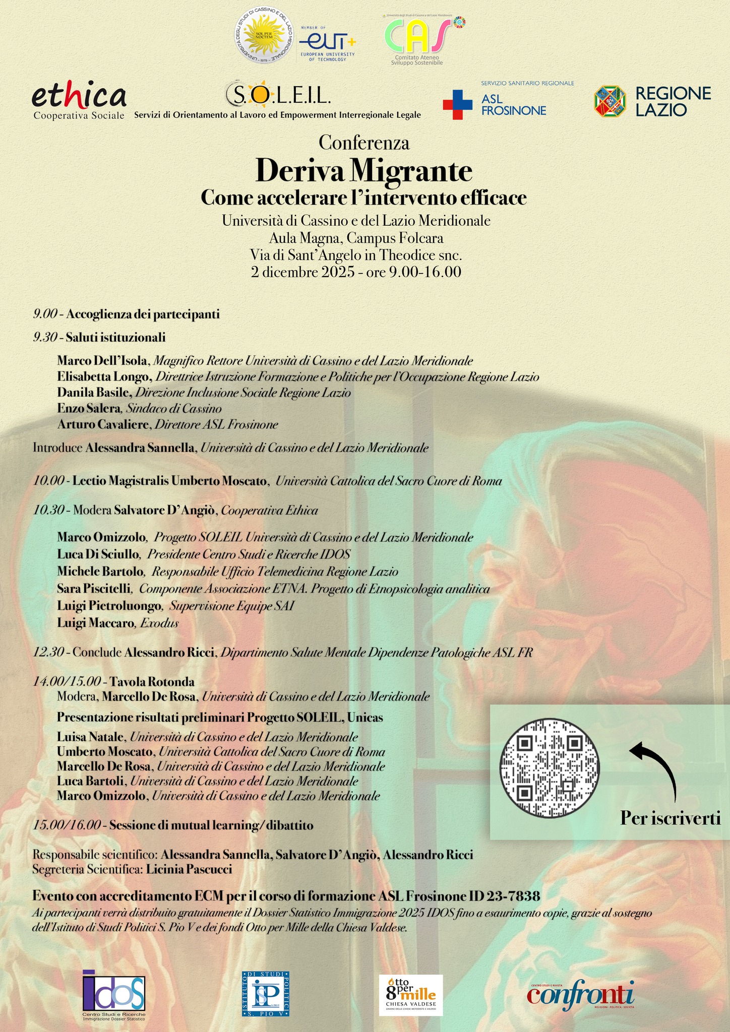 Conferenza promossa dall'Università degli Studi di Cassino e del Lazio Meridionale, nell'ambito della Delega allo Sviluppo Sostenibile, dalla Cooperativa Sociale Ethica, dai Servizi di Orientamento al Lavoro ed Empowerment Interregionale locale - S.O.L.E.I.L., dal Servizio Sanitario Regionale - ASL di Frosinone e dalla Regione Lazio.