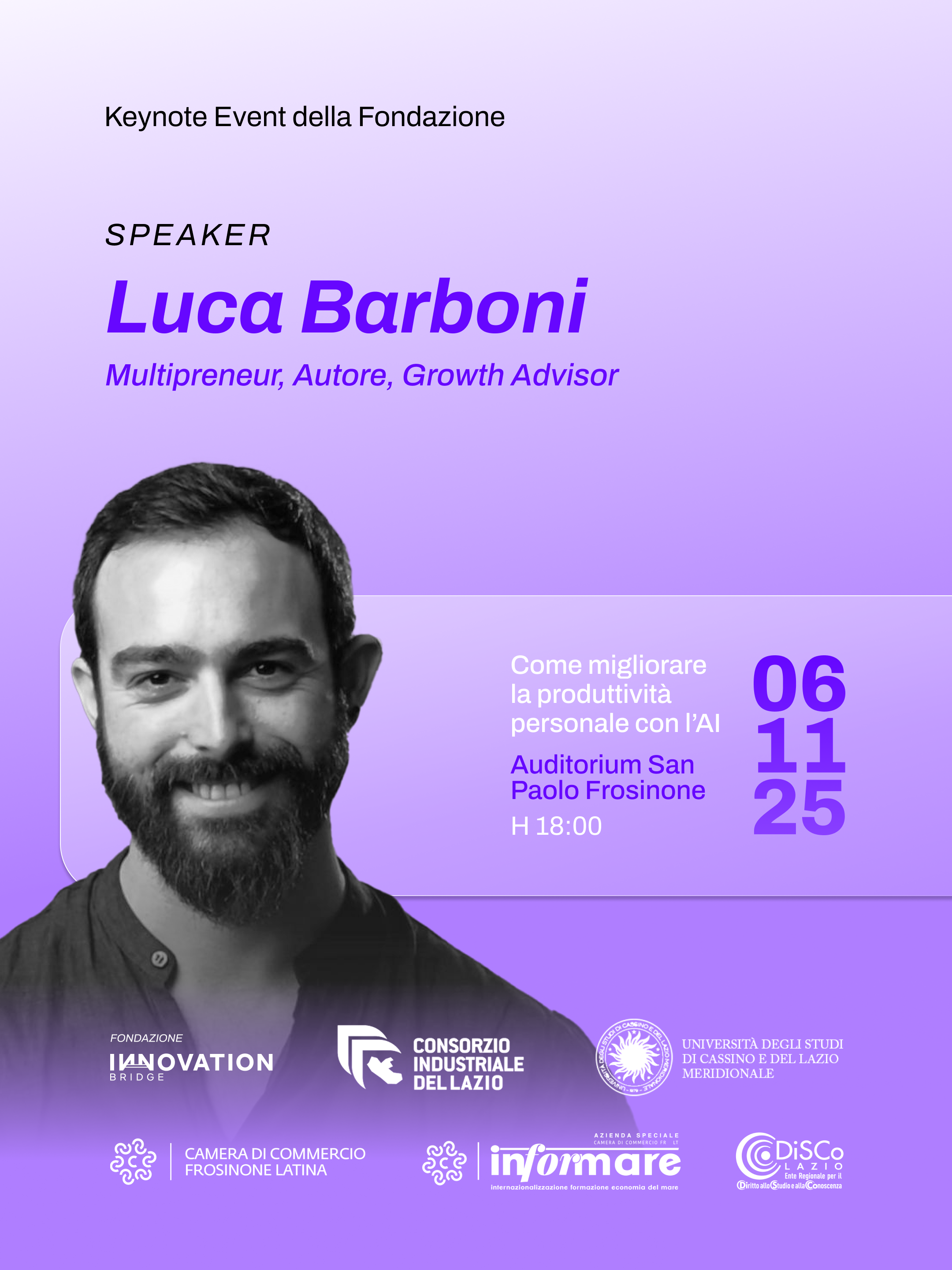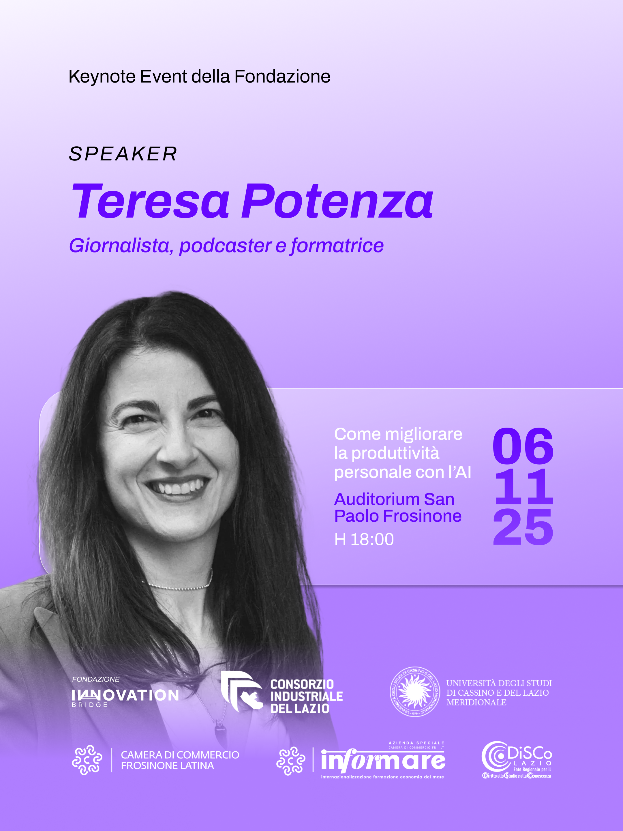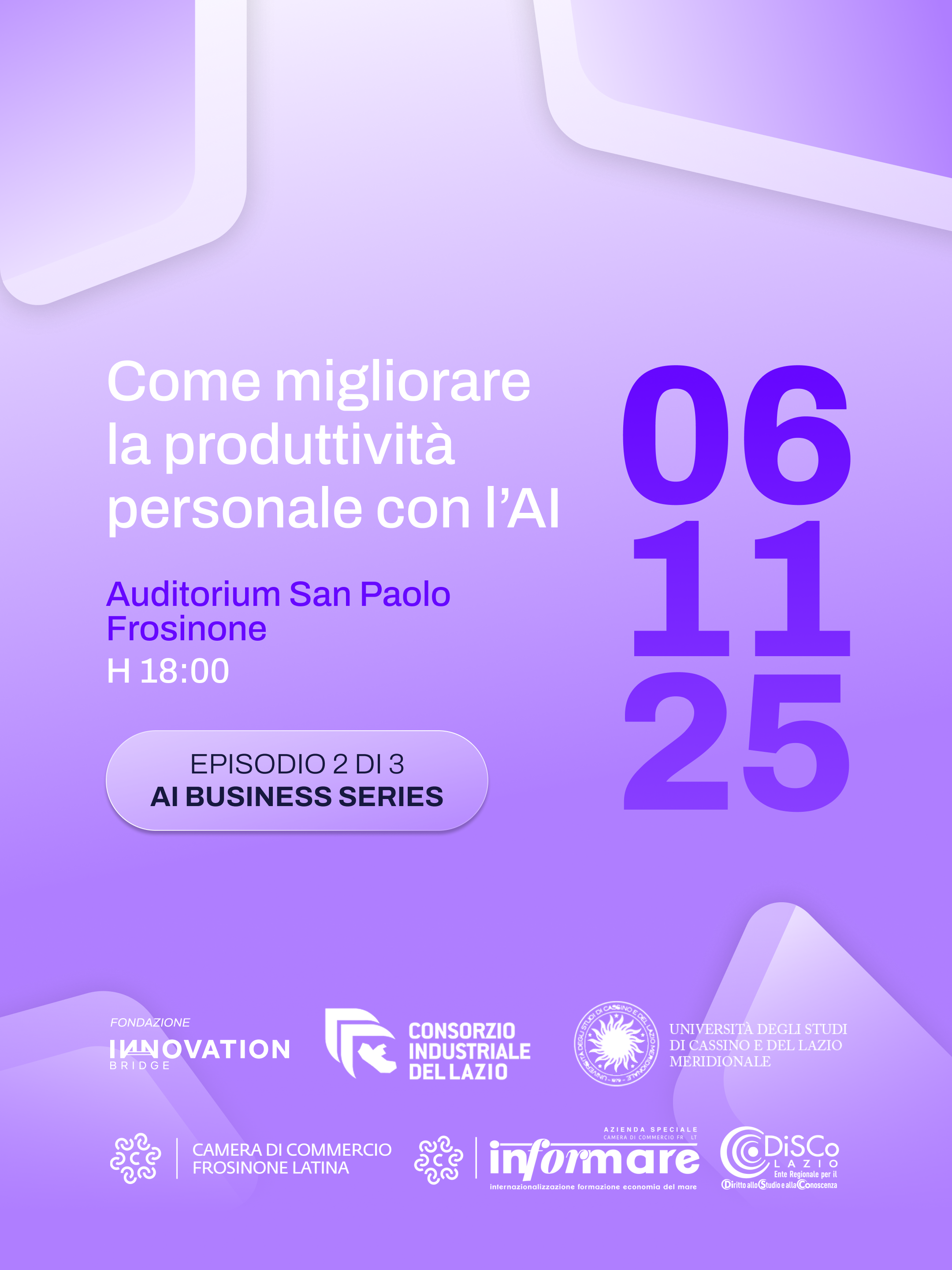 6 Novembre, ore 18 - Auditorium San Paolo - Frosinone– AI per la produttività personale.
